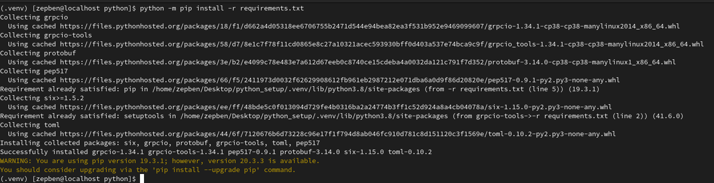 1. Move to the evolve-grpc python directory and run the 'venv' python command to generate a virtual environment. This command will create a directory called .venv where all the files related to the virtual environment will be stored. Remember this directory as we will need it in the future whenever we want to reference this virtual environment.